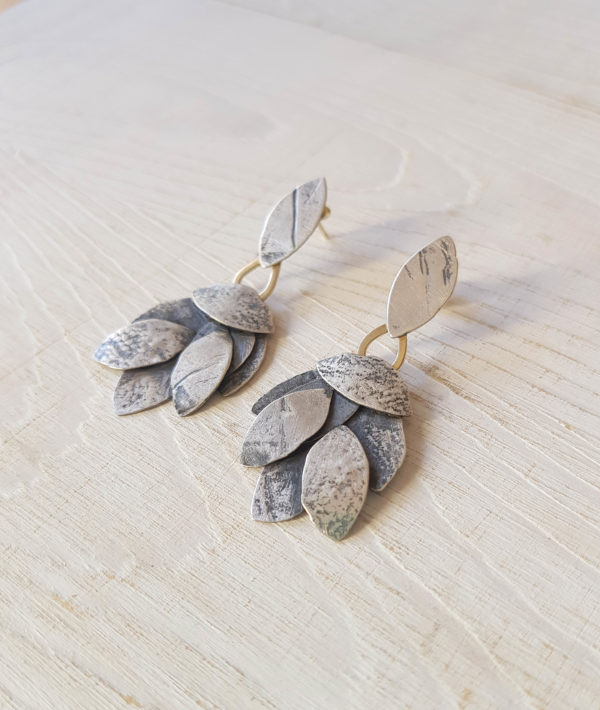 Pendientes Hojas plata y oro 18k