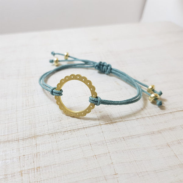 Pulsera con forma círculo ajustable con un cordón.