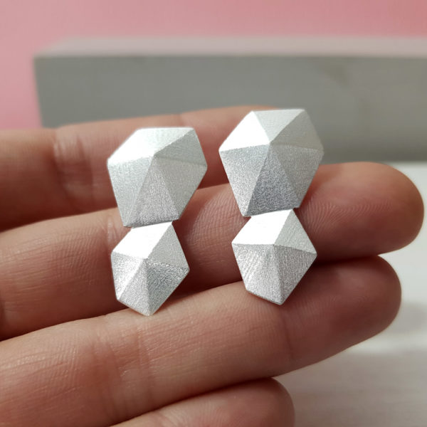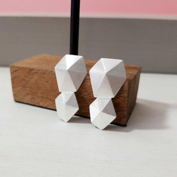 Pendientes de Plata largos para mujer Hi, Pendientes diseño geométrico con acabado diamantado y cierre presión.
