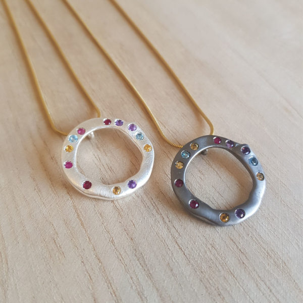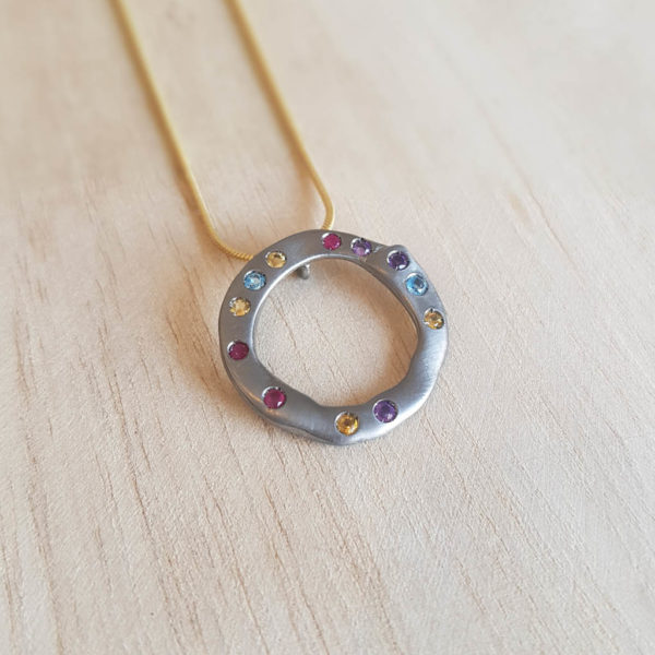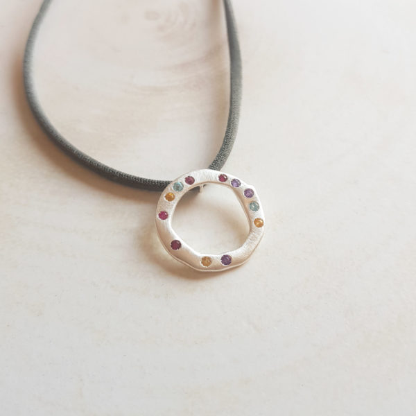 Colgante circular en plata con piedras preciosas y semipreciosas engastadas- Colección Ram