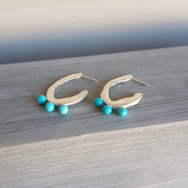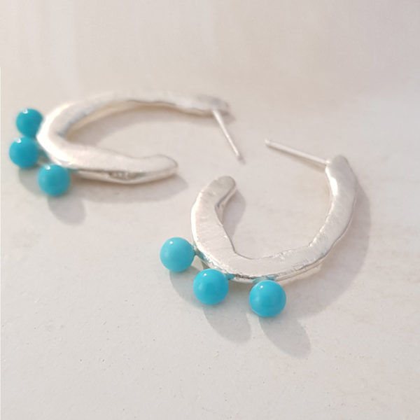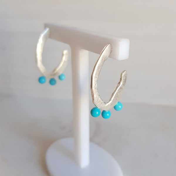 Aros irregulares de plata con turquesas naturales – Colección Ram